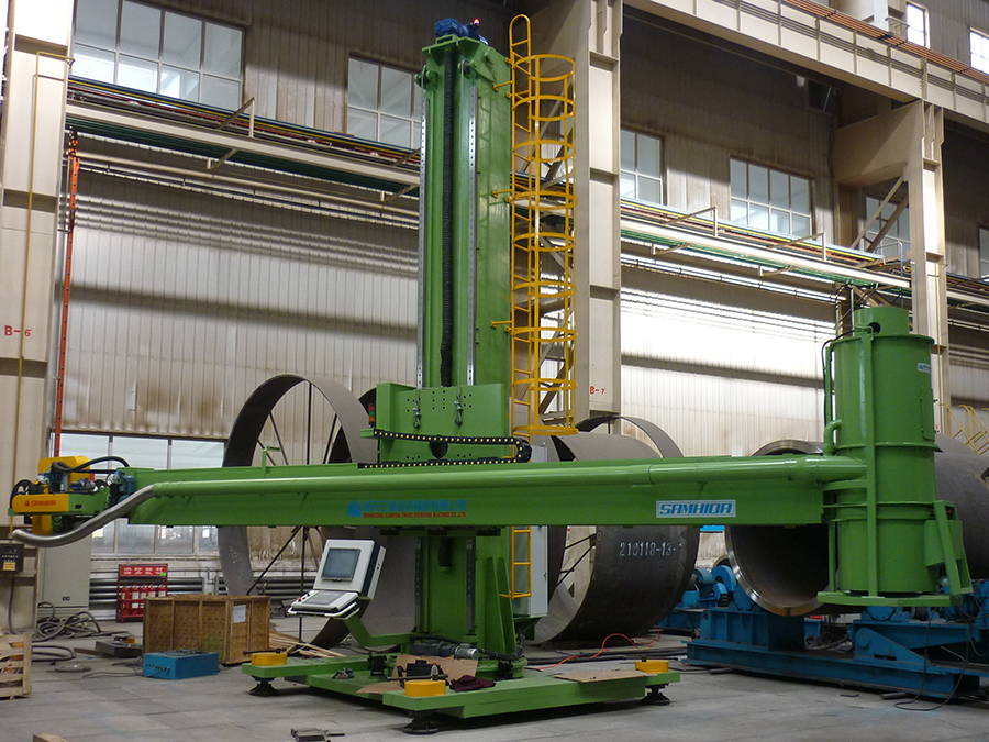2. .应用于筒体外表面纵、环焊缝余高的打磨和抛光,筒体内壁堆焊层的打磨抛光及筒体纵环向清根,如:(1)罐体内外纵、环焊缝焊筋磨削: (3)罐体内部不锈钢堆焊层平整磨削;(4)各种封头内表面堆焊层磨削及对焊边坡口磨削